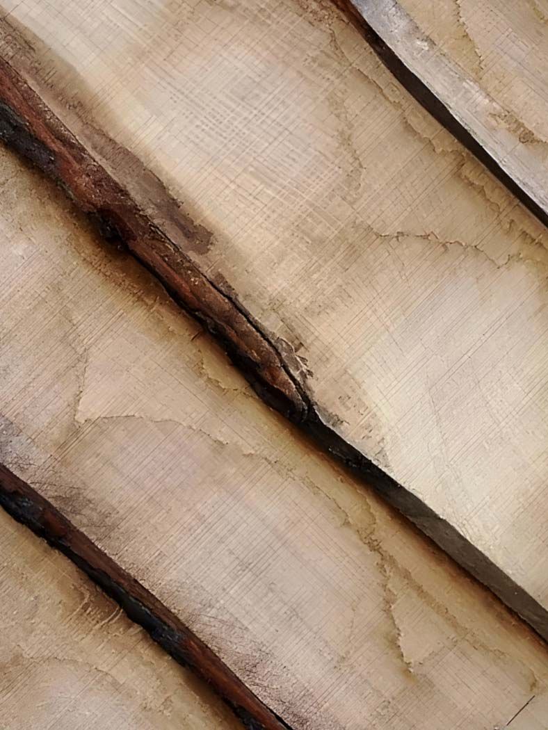 All wood begins as sapwood. The living, outermost layer of a tree’s trunk, stem or branch, sapwood is used to transport water and minerals from the ground to its branches and leaves. It can be identified by its lighter colour and often appears along the borders of a board.